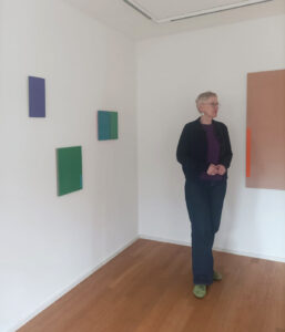 Wie nehmen wir Farbe wahr? Was geschieht, wenn sich die Farbe eines Bildes kontinuierlich verändert? Wie verwandeln Bildfarbe und farbiges Licht den Raum? Diesen und ähnlichen Fragen spürt die in Witten lebende Künstlerin nach.